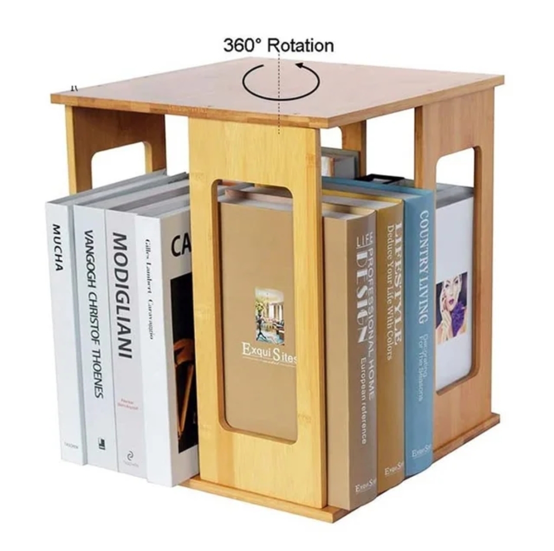Bamboo 360 Degree Rotating Bookcase Desk Storage Book Holder for Office Home bamboo